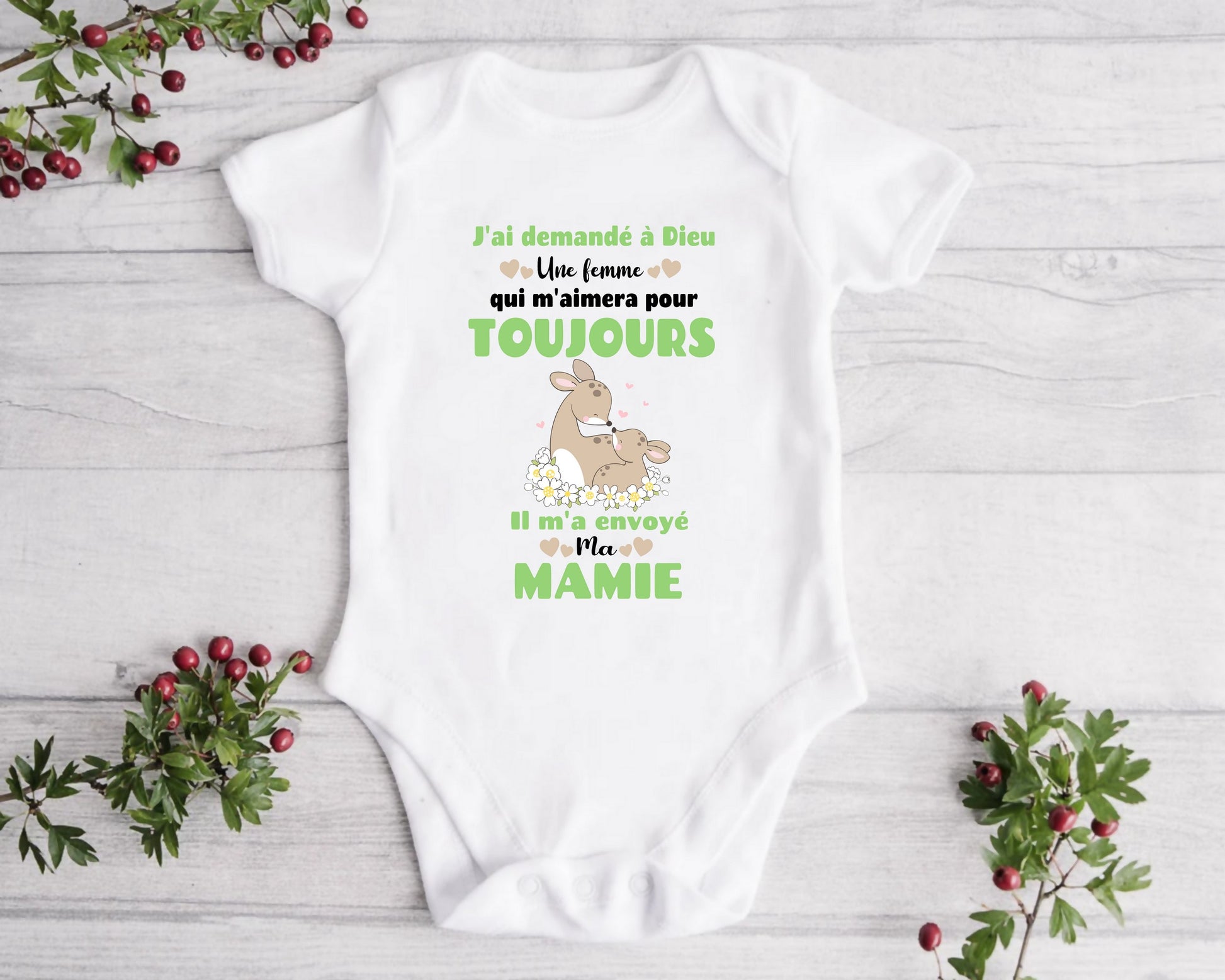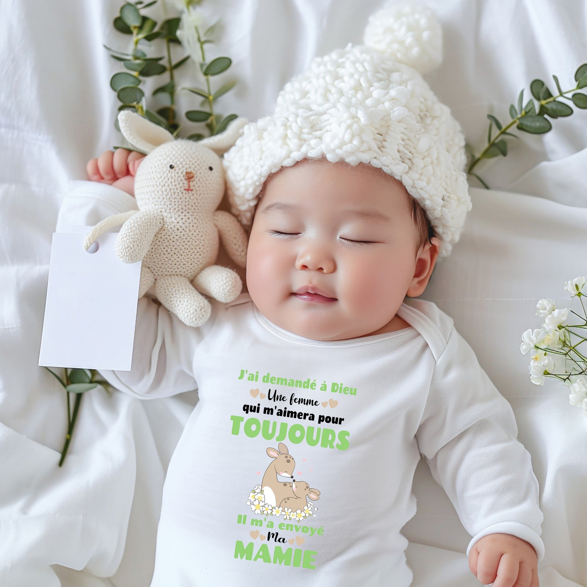 Body bébé « J’ai demandé à Dieu une femme qui m’aimera pour toujours, il m’a envoyé ma mamie "